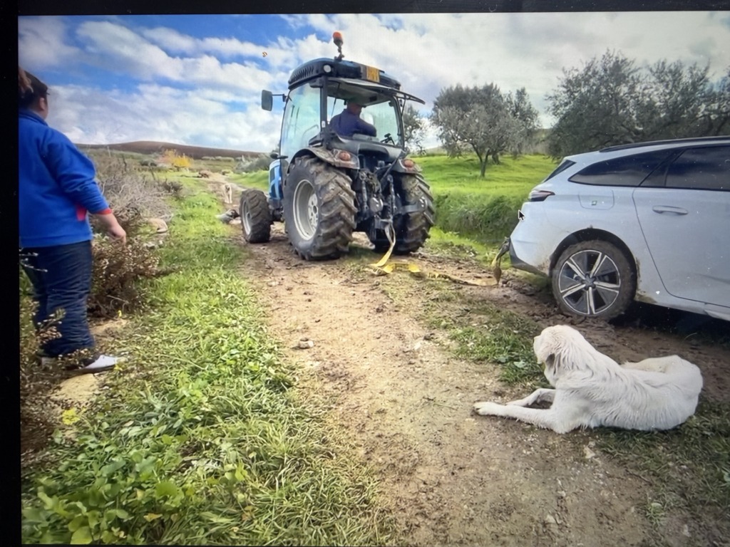 しかしこの日は運にも恵まれ、葡萄畑の1本道をトラクターで向かってくる葡萄畑のオーナーさんに助けを求めこの窮地を脱することができました。しかし救出には難を極めます。ロープは切れる、泥から片輪が抜け出せない、U字ロックのサイズが合わない等、娘は不安でたまらなかったようです。わたしたち家族を救ってくれたのはコルレオーネ村在住のサルバトーレさん。本当にありがとうございました。必ず、御礼を伝えに伺います。