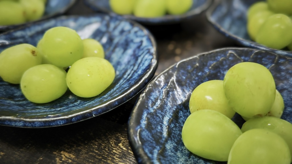 収穫仕立てのシャインマスカット。おひとり6粒、どーんと美味しい!