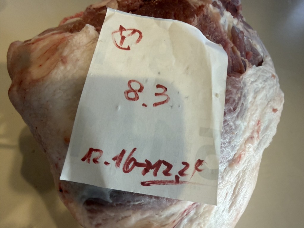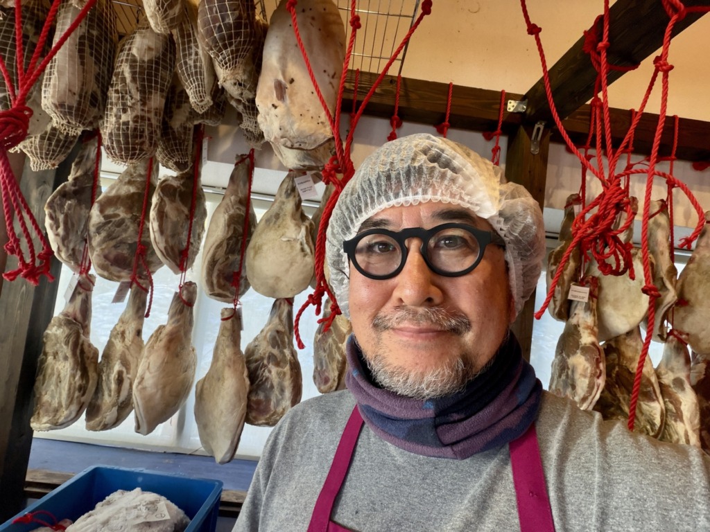 12.24kgの「黒豚」ジャンボン。再来年秋まで熟成され、テソーロ奥志賀に届きます。